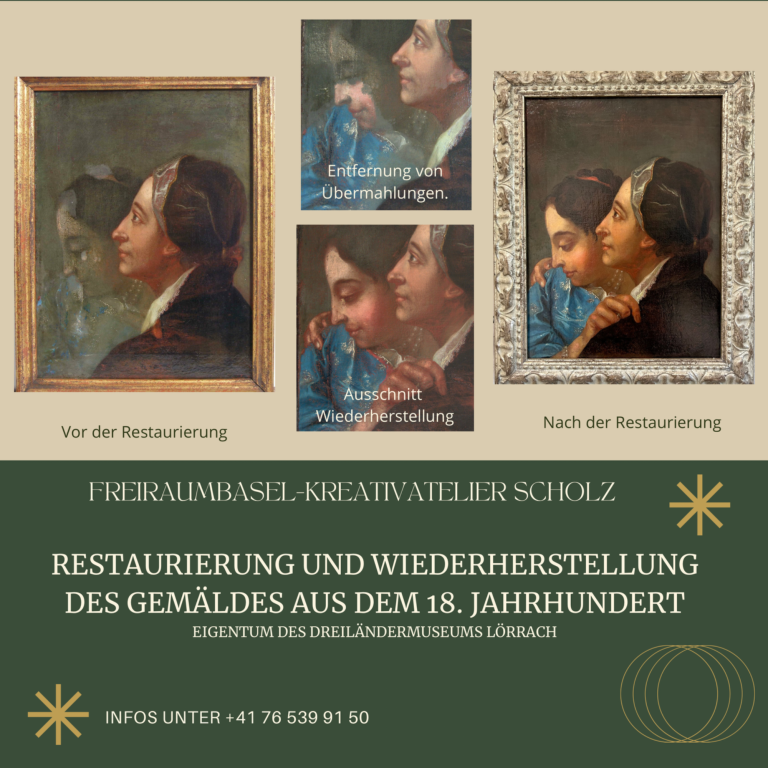 Durch die sorgfältige Reinigung und die Entfernung der vergilbten Firnisschicht konnte die originale Farbigkeit und Tiefenwirkung des Gemäldes wieder sichtbar gemacht werden. Alle Maßnahmen erfolgten unter Einhaltung der Grundprinzipien der Restaurierung: Reversibilität, Materialverträglichkeit und größtmögliche Schonung der Originalsubstanz.